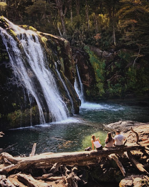 Sentarse en las piedras frente a la cascada permite observar los detalles que el turismo veloz suele pasar por alto. Foto: Villa La Angostura (Turismo).