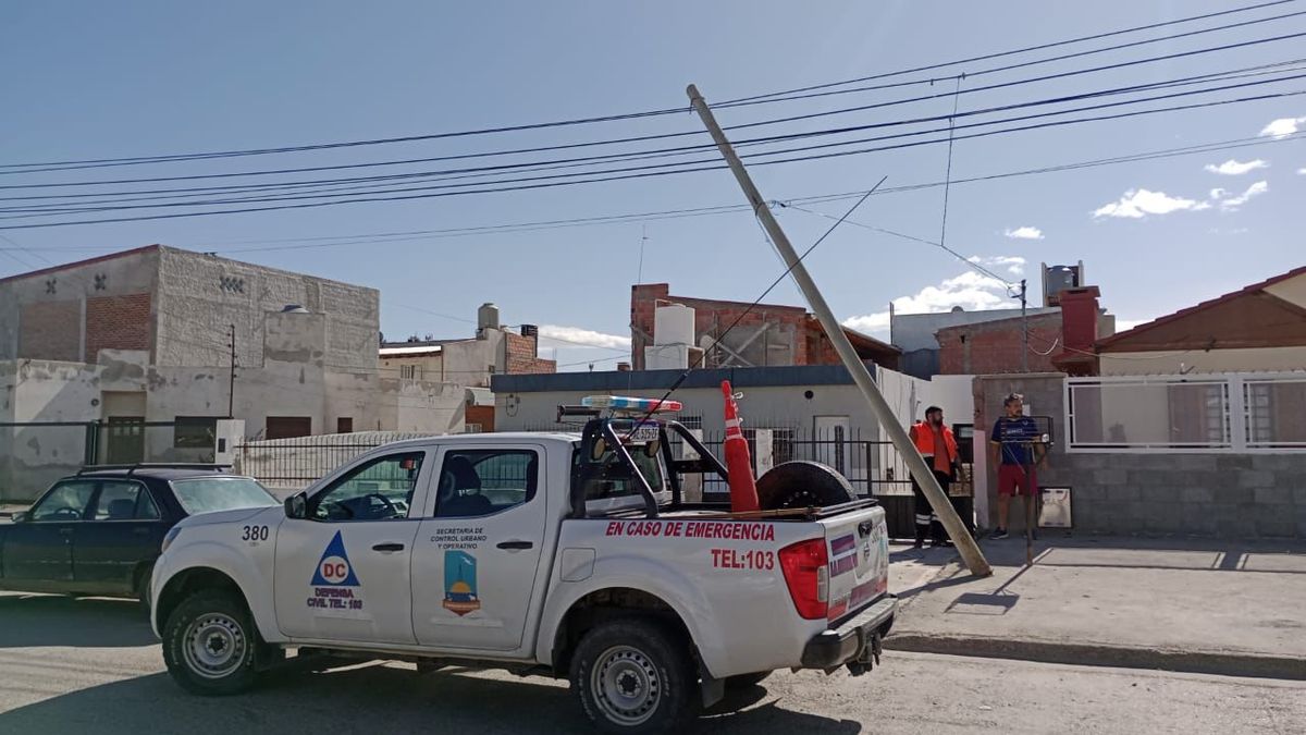 En Comodoro persiste el alerta amarillo por fuertes vientos y personal municipal intervino en diversos lugares, donde postes de luz fueron inclinados por las fuertes ráfagas. También resultaron afectados carteles y tramos de cableado en la zona céntrica.